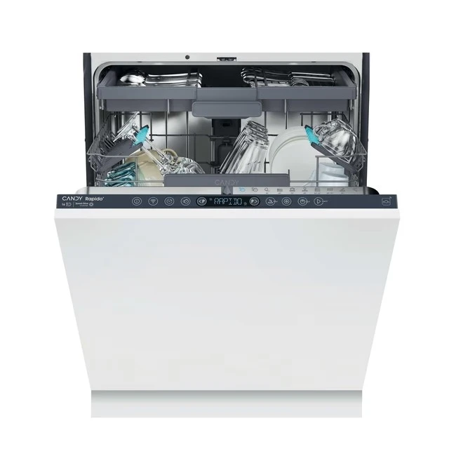 Az intelligens ajtónyitó rendszer az új Candy Rapido' összes mosási ciklusánál választható. A szárítási fázis során az ajtó néhány centiméterre automatikusan kinyílik, ezzel segíti a levegő keringését a mosogatógépben, hogy lehetővé tegye az edények természetes száradását. A kiválasztott ciklus időtartama megváltozik, ami optimalizálja az öblítési fázis során használt hőmérsékletet, és jelentősen csökkenti az energiafogyasztást.