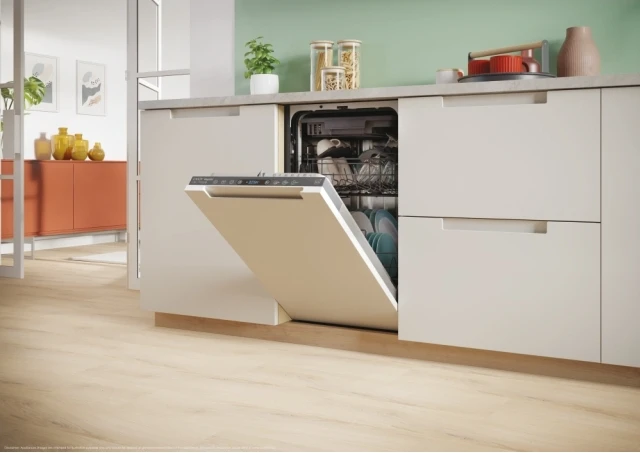 Ez a keskeny kialakítású mosogatógép tökéletesen és hatékonyan akár 11 terítéket is elmosogat.