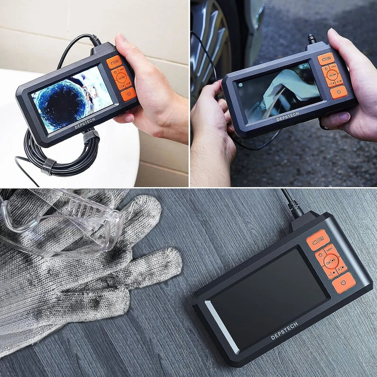 A Depstech DS300–5SL ipari ellenőrző kamera (endoszkóp) TF-kártyás (microSD) rögzítéssel és 5,5 mm-es ultravékony szondával könnyedén bejut mindenféle szűk helyre. Széles körben használják ipari gépek, autójavítás, csővezetékek javítása, otthoni légkondicionálók ellenőrzése, falszerkezetek, csatornavezetékek és egyéb nehezen hozzáférhető helyek ellenőrzésére. A 4,3"-os színes kijelzőn minden valós idejű kép és videó tisztán és zökkenőmentesen jelenik meg. ABluart* technológiával ellátott 6 LED-es világításnakés az IP67-es vízszigetelésnek köszönhetően az endoszkópos szonda könnyen, gyorsan és hatékonyan használható még nagyon sötét helyeken és a víz alatt is. Egyetlen feltöltéssel akár 4 órán át isüzemelhet, a rugalmas, félmerev kábel pedig simán leküzdi az összes kanyargós kanyart. További előnye az ergonomikus kialakítás és az összes gomb könnyű, egykezes működtetése.