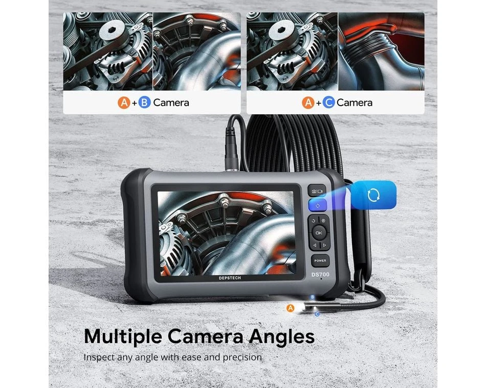 Ellenőrző kamera forradalmi 7"-os ultraszéles IPS képernyővel. A nagy, kristálytiszta kijelzőn egyszerretöbb részletet láthat,lenyűgöző tisztasággal és pontossággal, csökkentve az ismételt ellenőrzések szükségességét és növelve a munka hatékonyságát. Az IPS technológia jobb színpontosságot és szélesebb betekintési szögeket biztosít. Ez az innovatív kamera három önvilágító lencsét is kínál, így a professzionális szerelők, vízvezeték-szerelők és barkácsolók számára nélkülözhetetlen eszköz. A három lencse különböző szögekből rögzíti a képeket, így átfogóbb képet ad az ellenőrzési területről.