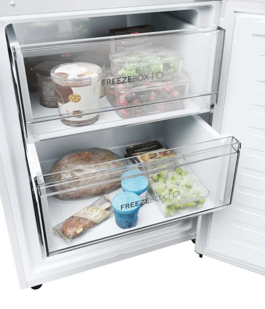 A Haier kétajtós hűtőszekrények az előkelő dizájn és az élvonalbeli funkciók, valamint a csökkentett energiafogyasztás tökéletes kombinációját nyújtják. Ezek a hűtőszekrények a speciális zónák és az egyedülálló fejlett technológiák révén tökéletes élelmiszer-tartósítást tesznek lehetővé. Ezenkívül a hOn App, a mesterséges intelligencia és a Wi-Fi csatlakozás innovatív funkciókat kínál a fokozott élelmiszerek megőrzése érdekében.