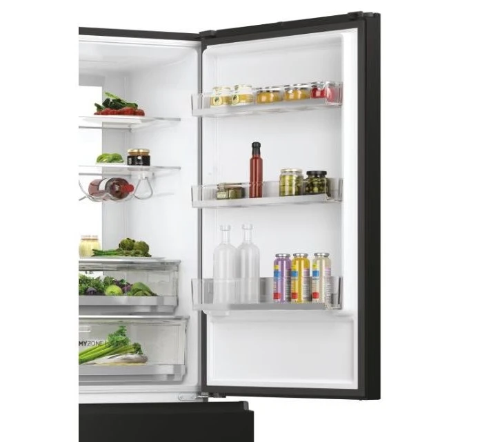 Haier HTW7720DNGB hűtőszekrény, 3 ajtós, 483 liter, fekete