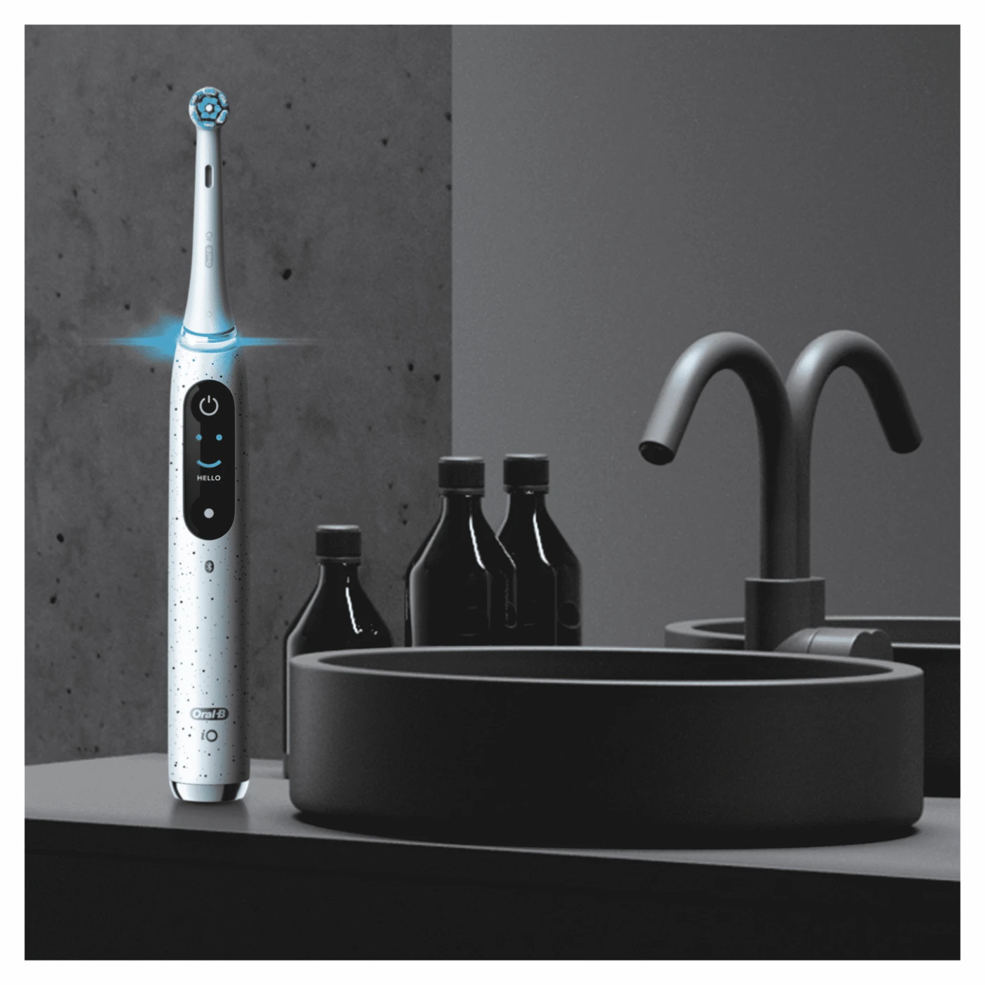 Az iO 10 elektromos fogkefe és a forradalmian új iO Sense intelligens töltőállvány személyre szabott fogmosást és valós idejű visszajelzést nyújt, így irányítja Önt a tökéletes lefedettség, a megfelelő fogmosási idő és nyomáserősség érdekében, a kellemesen könnyed tisztításért. A gyengéd mikrovibrációk és a fogászati eszközök ihlette, különleges, kerek fogkefefej kombinációja a professzionális tisztítás élményét nyújtja minden nap. A legjobb eredmény érdekében 3 havonta cserélje le az Oral-B iO fogkefefejet.
