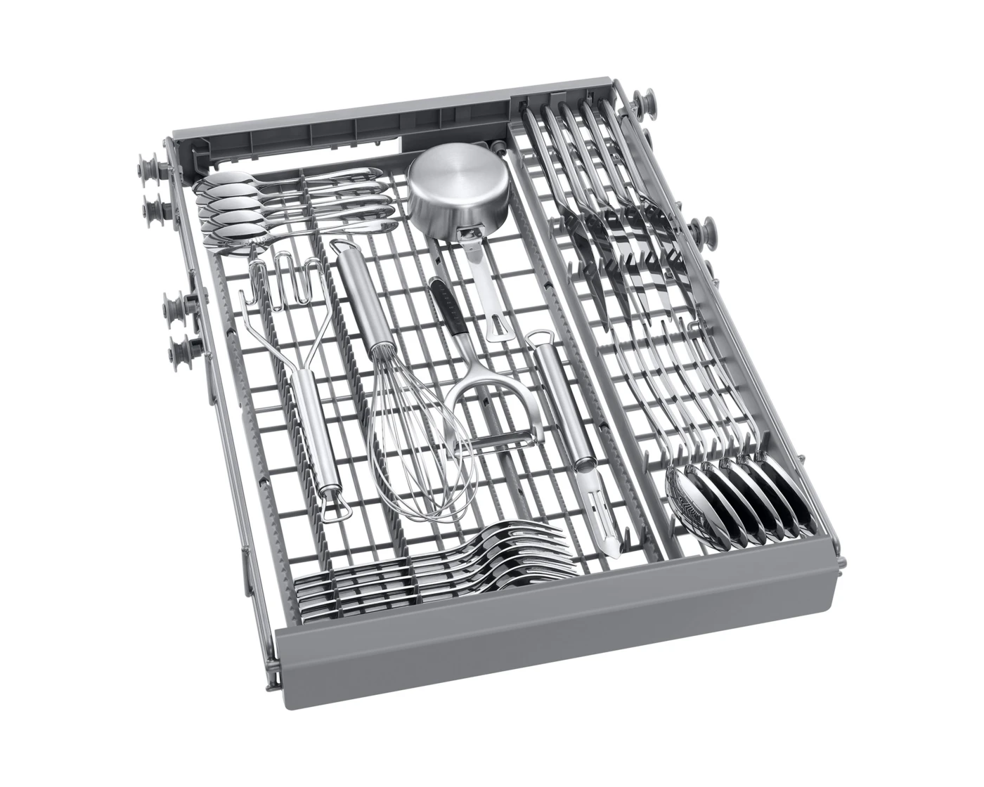 Használd ki jobban a mosogatógéped! Az átalakítható evőezköz tálca külön területet biztosít az evőeszközöknek és konyhai eszközöknek, így több helyet szabadít fel az alsó állványokon. Ez azt is jelenti, hogy a tárgyak könnyedén be- és kirakodhatók, különösen mivel levehető és bárhová áthelyezhető.