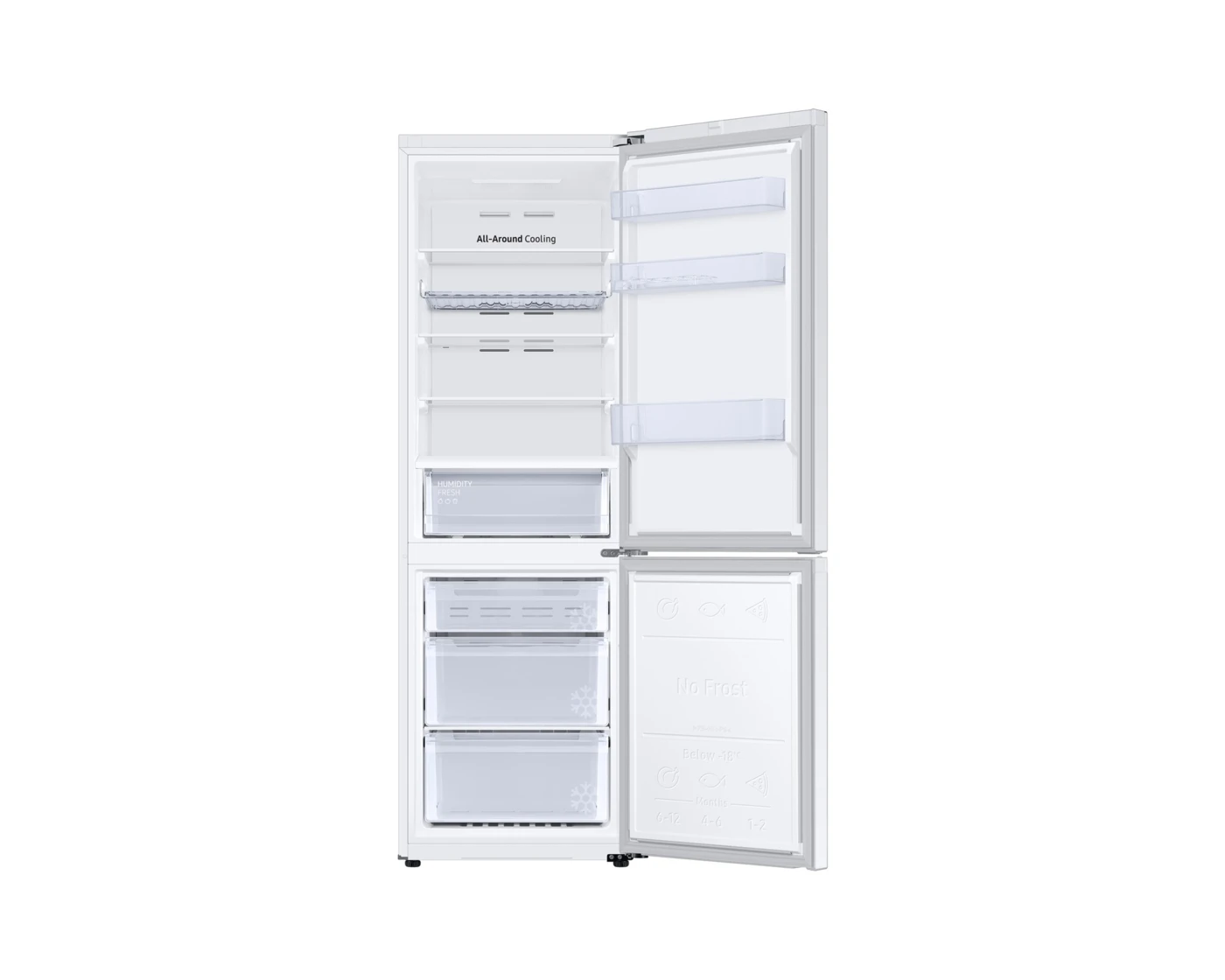 Fontos, hogy az ételeid megfelelően legyenek hűtve - bárhova is teszed őket a hűtődben. A Körkörös hűtés minden rekeszt egyenletesen hűt, saroktól sarokig. Folyamatosan figyeli a belső hőmérsékletet, és a stratégiai pontokon elhelyezett nyílásokon keresztül keringeti a levegőt. Így az élelmiszer az optimális hőmérsékleten marad, és hosszabb ideig friss marad.