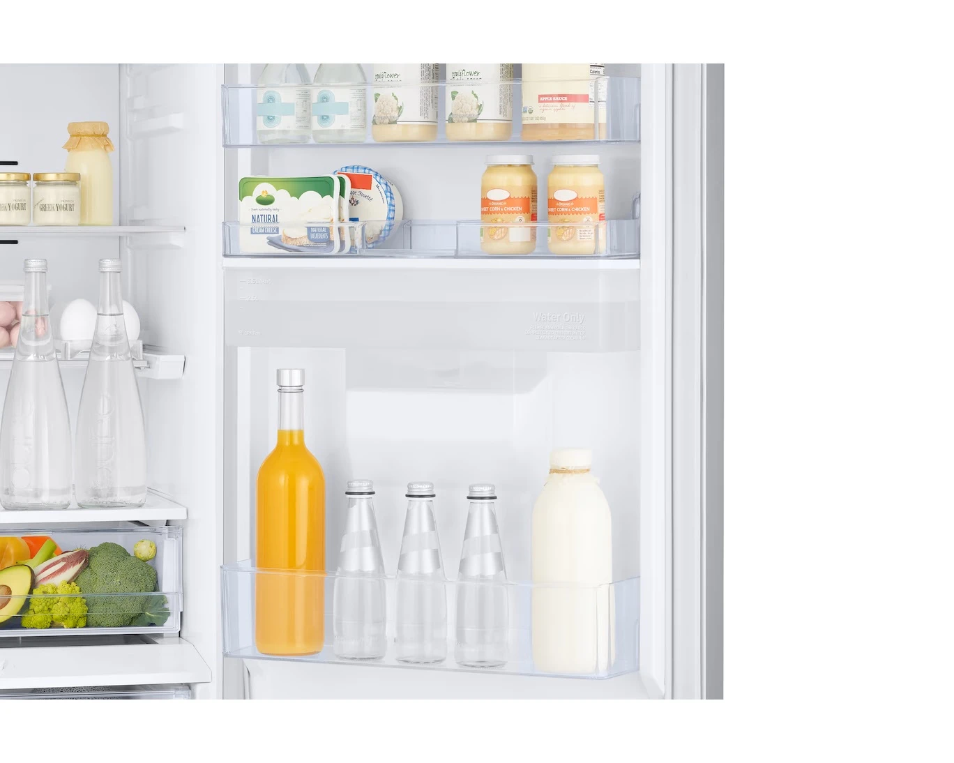 Tárolj nagyobb, akár 2,5 liter méretű üvegeket az ajtóban, hogy a polcokon több hely maradjon másnak! Az ajtóban lévő szélesebb és mélyebb tárolórekesz segítségével biztonságosan tárolhatsz széles kartonokat vagy nagy üvegeket. Tökéletes ahhoz, ha könnyen el szeretnéd érni a kedvenc, hűtött italaidat.