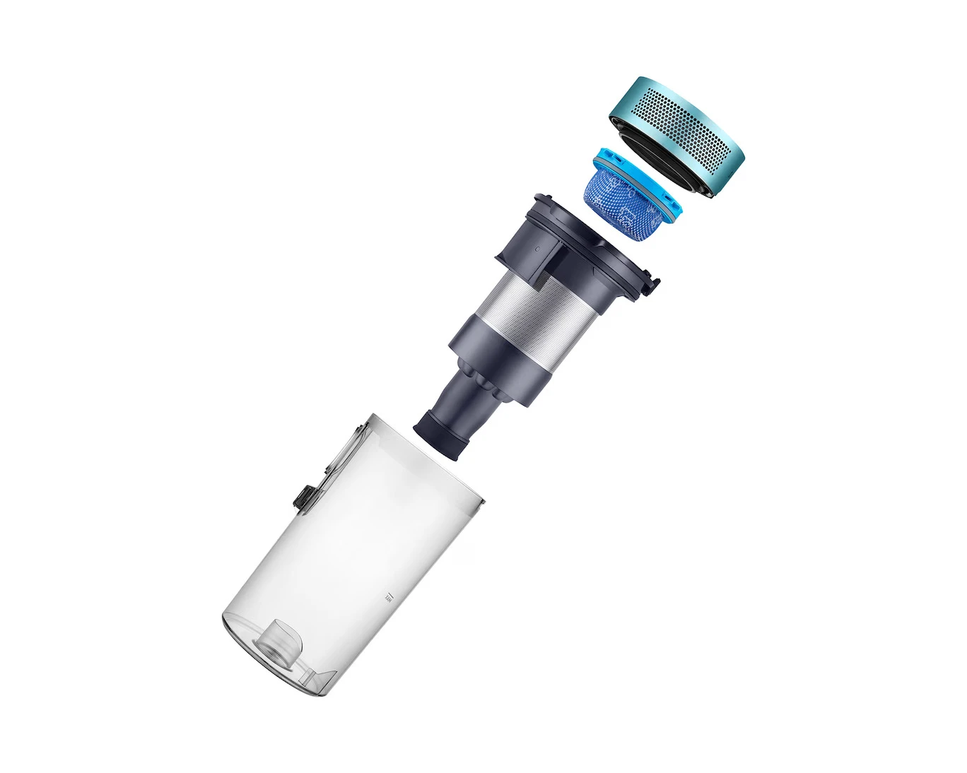 Könnyű vezérléssel és mozgatással könnyedén takaríthatod otthonodat. A könnyű kialakítás maximális használhatóságot biztosít, és csökkenti a csuklódat érő terhelést. A kézi készüléktest súlya mindössze 1,48 kg, ami 21%-kal könnyebb*, mint a hagyományos Samsung takarítógépeké. Így könnyedén takaríthatsz az egész ház körül. 5
