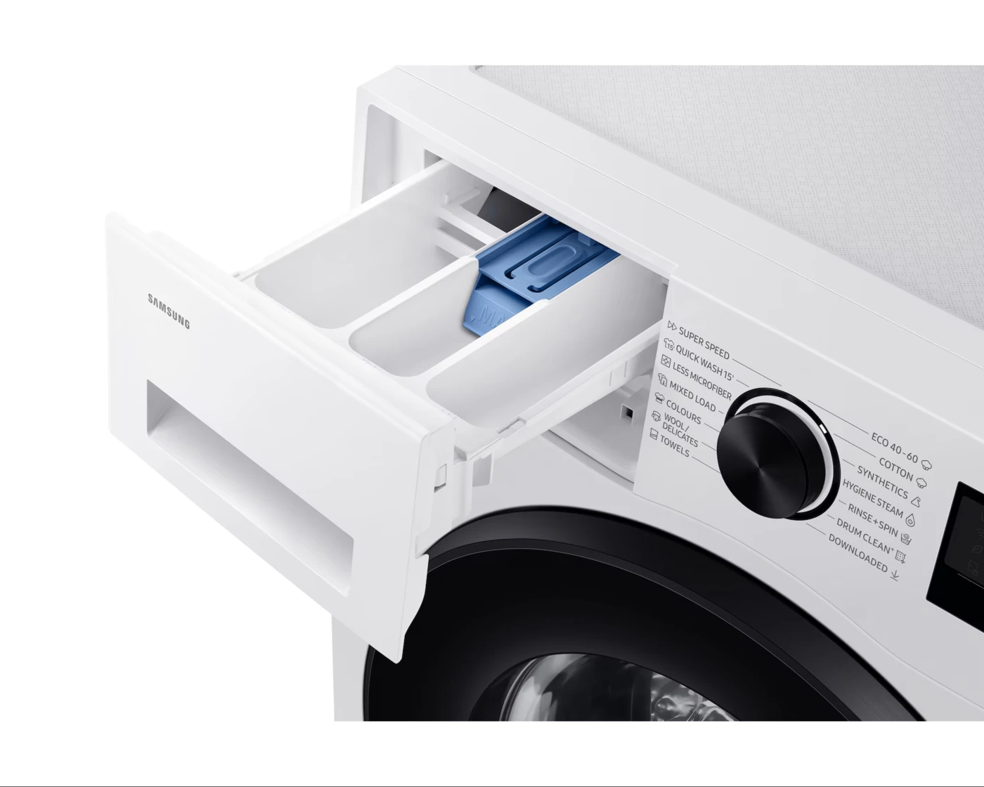 Az AI Ecobubble egy Samsung technológia, amely a szövetérzékelés, a mosószer buborékokká alakítása és a Samsung automatizált AI energiamegtakarítási megoldása, az AI Energia üzemmód segítségével optimalizálja a mosási ciklusokat. ** A WF90F/24 Pamut alapprogrammal, Ecobubble funkcióval, 4 kg töltettel végzett belső tesztelés alapján, az IEC 60456-2010 szabványnak megfelelően, összehasonlítva az Ecobubble funkció nélküli Pamut alapprogrammal. Az eredmények a tényleges használati körülményektől függően eltérhetnek. *** A szövetérzékelés AI algoritmust használ, és csak akkor aktiválódik, ha a Pamut, Szintetikus vagy AI mosási ciklusokat választják ki. 3 szövetfajtát (pamut, finom szövetek, törölközők) érzékel, maximum 2 kg töltet esetén. A vegyes szövetek csökkenthetik az érzékelés pontosságát. A tényleges eredmények az egyéni használattól függően eltérhetnek. A ruhák idő előtti elhasználódásának elkerülése érdekében a hasonló szöveteket együtt javasolt mosni. **** A WF90F/24 Pamut alapprogram AI Energia üzemmód funkcióval, 4 kg töltettel, összehasonlítva a Pamut alapprogrammal AI Energia üzemmód funkció nélkül, az IEC 60456-2010 szabványnak megfelelő belső tesztelés alapján. Az eredmények a tényleges használati körülményektől függően eltérhetnek. A megtakarítás hideg vízzel történő mosással érhető el. ***** Az Ocean Wise Plastics Lab által végzett teszt alapján, 2 kg 100% poliészter pulóver mosásakor, összehasonlítva a Samsung WW4000T modell szintetikus ciklusát és a Samsung WW7000B Less Microfiber programját. Az eredmények a tényleges ruháktól és a használati körülményektől függően eltérhetnek.Alapos tisztítás