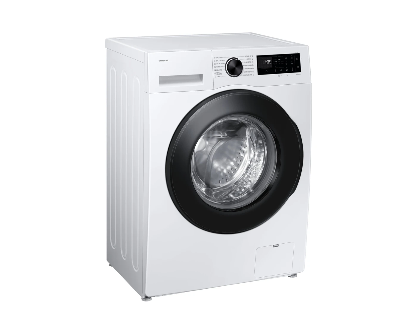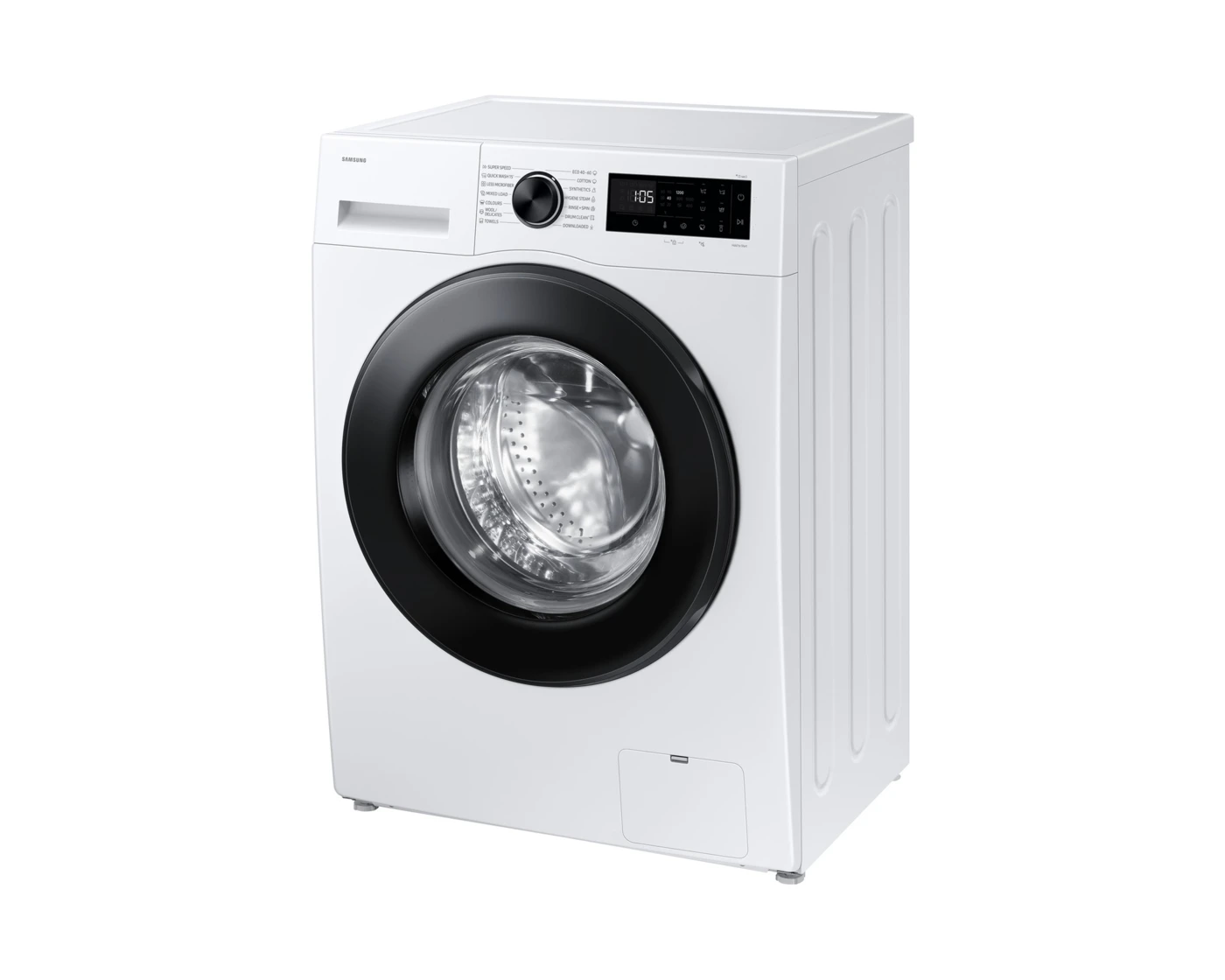 * Az IEC 60456 5. kiadásának megfelelően tesztelve 8 kg mosási terhelés Habos áztatás funkció mellett összehasonlítva a pamut 40/60 °C, szintetikus 60 °C és farmer 40 °C mosással Habos áztatás nélkül.Használd a SmartThings-et otthon!