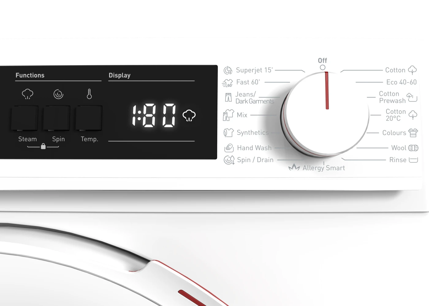 Allergy Smart Program – Speciálisan az allergiások és érzékeny bőrűek számára kialakított program, amely magas hőmérsékleten és hosszabb öblítéssel hatékonyan távolítja el az allergéneket a ruhákból.