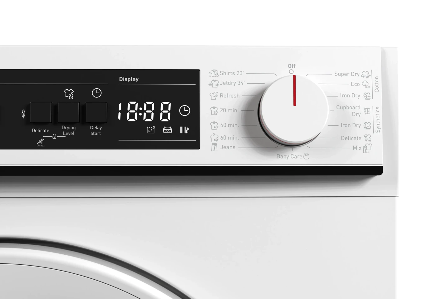Gyors programok: Tartalmazza az Express 34' programot kisebb töltetekhez, valamint a Shirts 20' programot munkaruhák gyors szárításához.