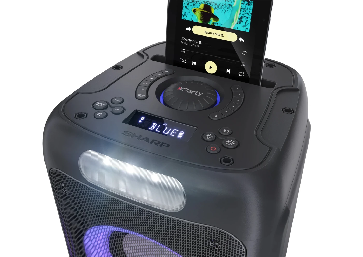 Telefon/táblagép tartónyílás a tetején a lejátszási listák egyszerű eléréséhez