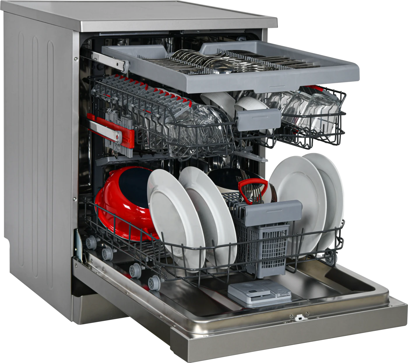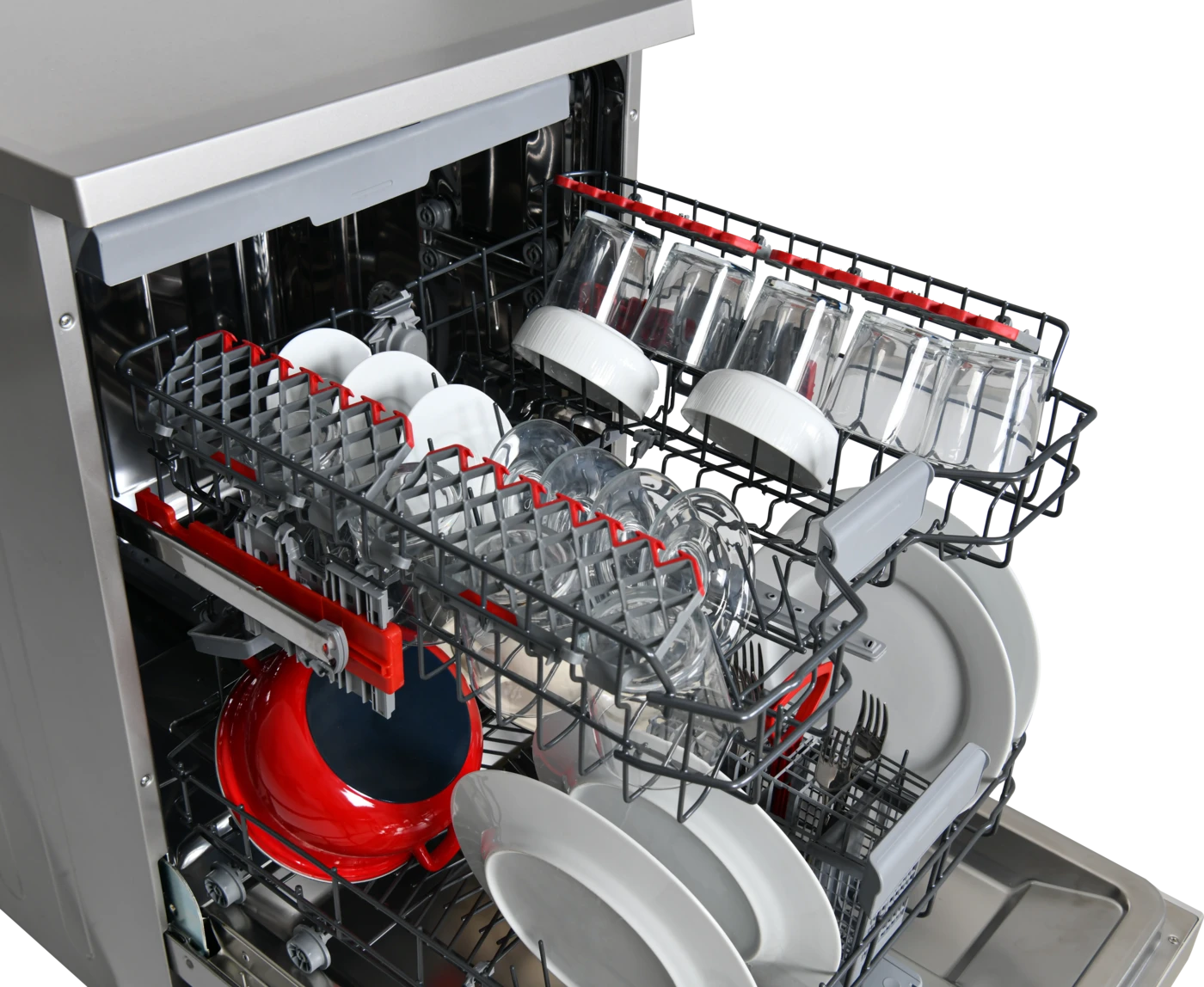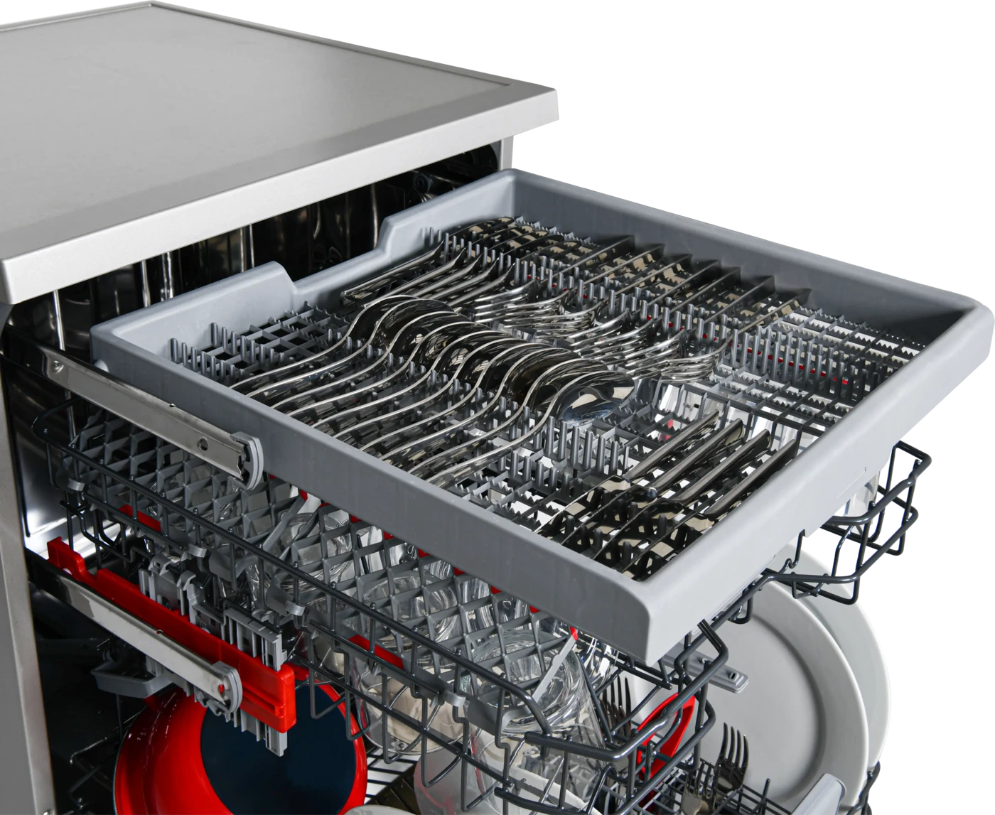 Kosarak: 3 kosaras kialakítás, beleértve egy külön, felső szintű evőeszköztálcát, amely extra helyet szabadít fel az alsó kosarakban.