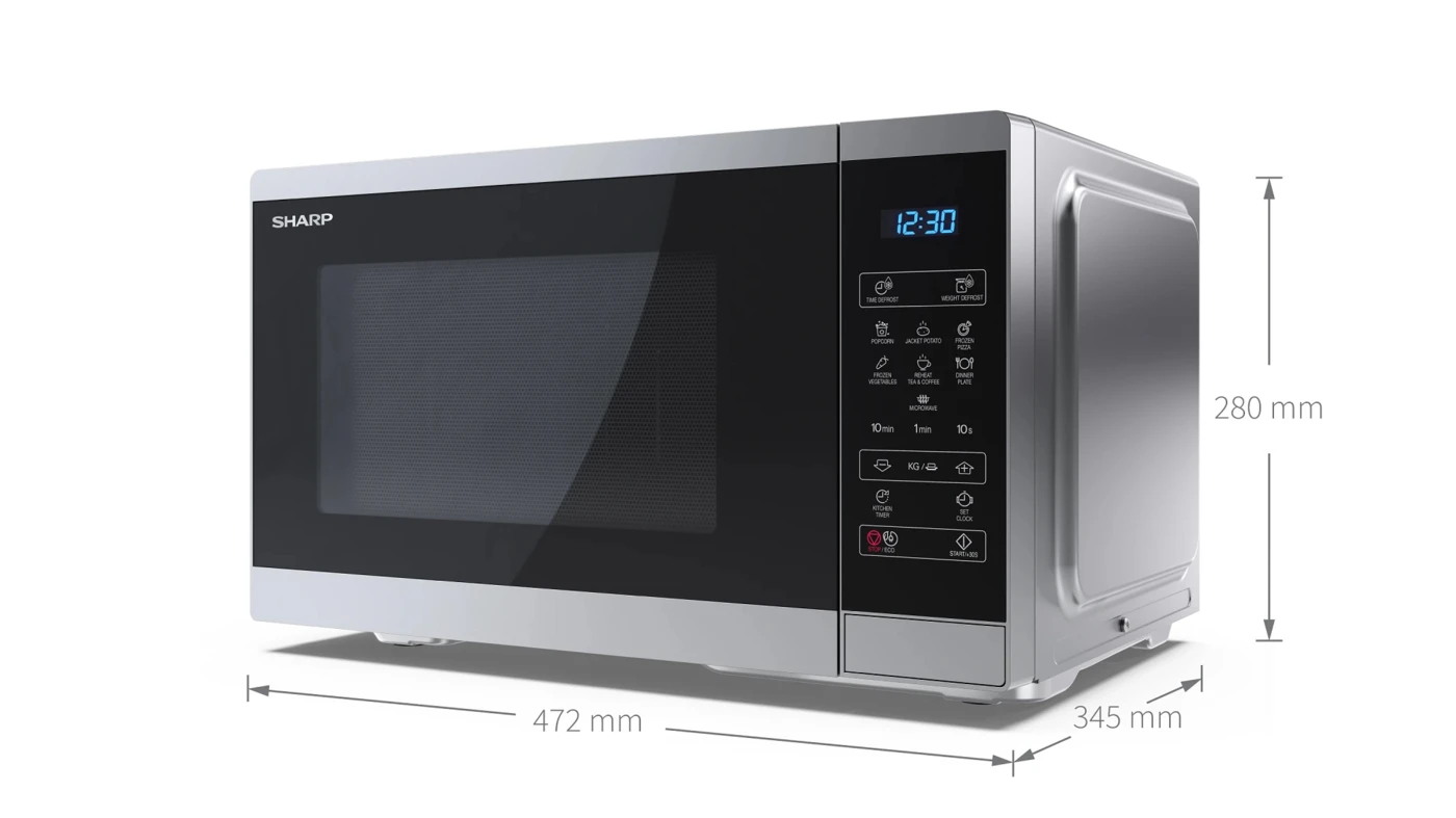 SHARP YC-MS252AE-S 25L, digitális mikrohullámú sütő, ezüst/fekete