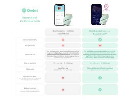 Az Owlet eddigi legfejlettebb bébiőrjének segítségével minden alapvető értéket láthat, hallhat és felügyelhet, ami a baba életében fontos lehet. Az Owlet cam2 videos kamera és az Owlet DreamSock okos babazokni hitelesített orvosdiagnosztikai eszköz. Ezekkel a fejlett termékekkel nyomon követheti a baba szívritmusát, véroxigén szintjét, alvási szokásait, és közvetlenül az okostelefonon mindezek láthatja is streaming HD videó formájában. Számíthat az Owlet fejlett technológiájára, amely klinikailag bizonyított, orvosi pontosságú, és az Owlet Dream alkalmazáson keresztül figyelmeztet, ha a baba szívritmusa vagy véroxigén szintje eltér az előre beállított értékektől.