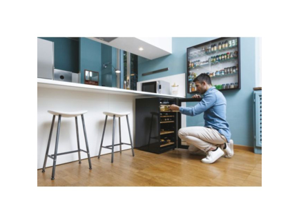 Az elektronikus kezelőpanel lehetővé teszi a DiVino borhűtő egyszerű és intuitív vezérlését. Kapcsolja be vagy ki a hűtőt egy egyszerű érintéssel, válassza ki a fehérborok, vörösborok és pezsgők számára megfelelő hőmérsékletet, vagy a hőmérsékletet a különféle bortípusok kombinációjának tárolásához. Ha szeretné, manuálisan is beállíthatja a hőmérsékletet, 7 és 18 fok között.