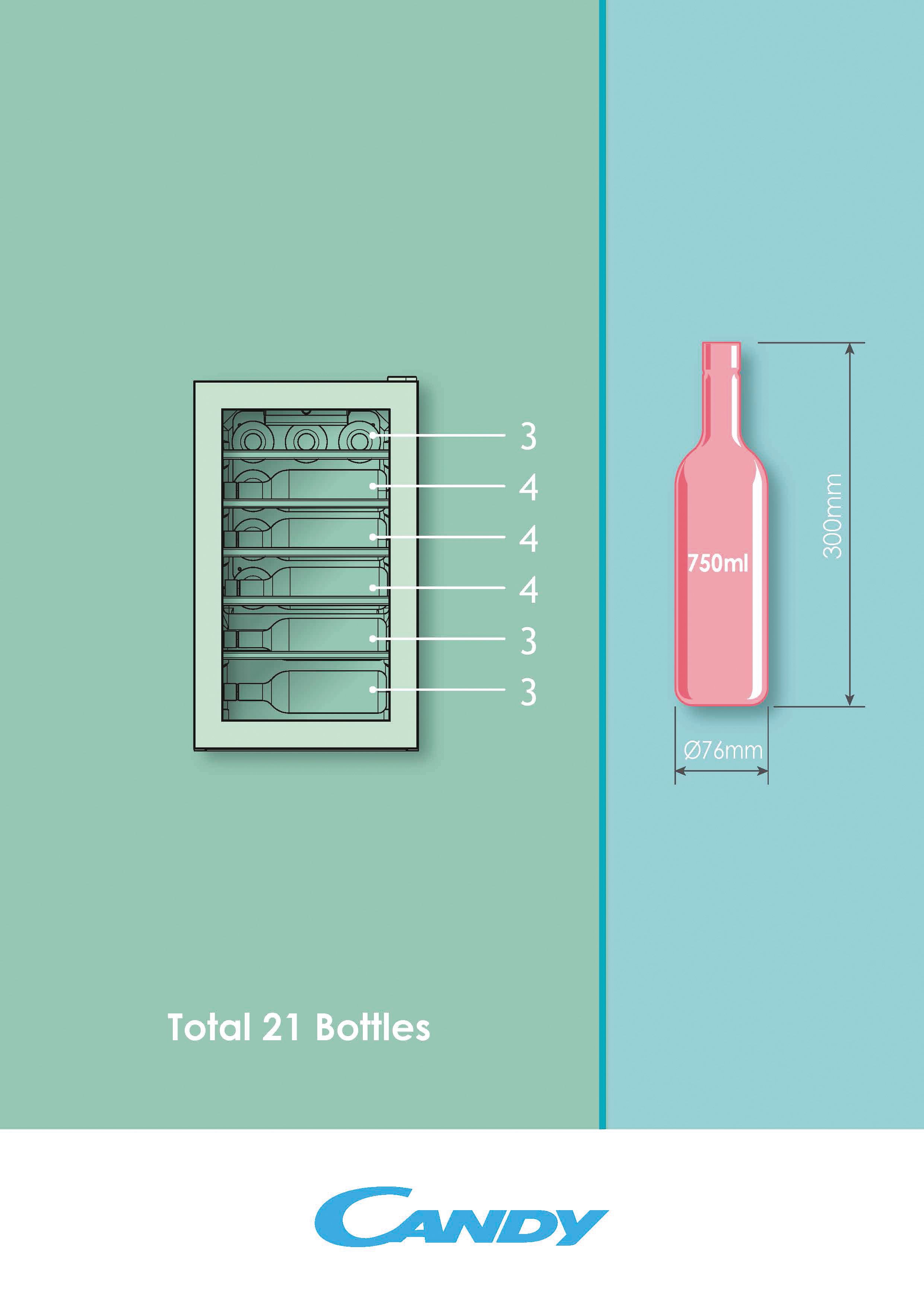 A szabadonálló CANDY borhűtőben a lehető legjobb minőségben tárolhatod el a borokat. A borhűtő belső klímája stabil környezetet biztosít a borok számára, és az egyes borfajták érlelését is segíti. Összességében 6 db polcot kínál. A polcok alapanyaga fém. Ez az egyzónás borhűtő egyféle bor tárolásához ideális, mivelhogy a belsejében egyszerre nem állíthatsz be eltérő hőmérsékleteket. A borok szebb prezentációja érdekében LED világítással úgyszintén ellátták. A hűtés kompresszorral történik, melynek előnye az alacsony fogyasztás és a nagy teljesítmény. Az elsőrangú CANDY borhűtő tömege 22 kg.