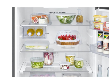 Fontos, hogy az ételeid megfelelően legyenek hűtve - bárhova is teszed őket a hűtődben. A Körkörös hűtés minden rekeszt egyenletesen hűt, saroktól sarokig. Folyamatosan figyeli a belső hőmérsékletet, és a stratégiai pontokon elhelyezett nyílásokon keresztül keringeti a levegőt. Így az élelmiszer az optimális hőmérsékleten marad, és hosszabb ideig friss marad.