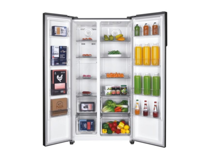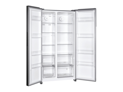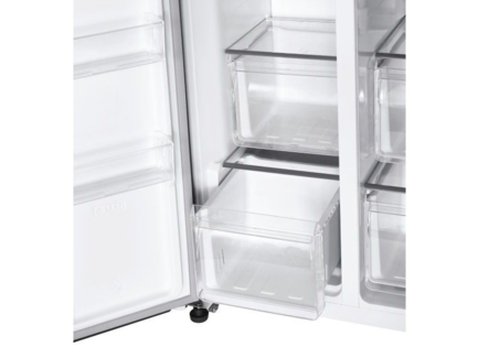 A hatalmas Side by Side hűtőszekrény maximális ételtárolási kapacitást biztosít, és bármilyen konyhai stílushoz tökéletesen illik.