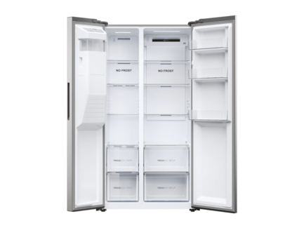 A 90 cm széles Haier Side By Side hűtőszekrények nagy kapacitást biztosítanak, miközben könnyű hozzáférést nyújtanak a hűtő- és fagyasztóterekhez. A tágas tárolóhely lehetővé teszi, hogy nagy mennyiségű élelmiszert tárolj egyszerre, miközben a hely zsúfoltság mentes és rendezett marad. Elegáns kialakításuk bármilyen konyhastílushoz illeszkedik, és az érintőkijelzőn bármikor beállítható a tökéletes hőmérséklet igényeid szerint. Ezek a hűtőszekrények Total No Frost technológiával és 90°-os automatikus leállási csuklópánttal büszkélkednek.
