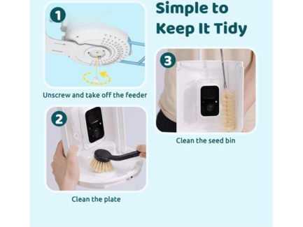 A madáreleségtartály kapacitása bőséges, 1,5 liter, ami a madárlátogatók számától és méretétől függően több hetes normál működésre elegendő. A csuklós fedél lehetővé teszi az etetőanyag könnyű újratöltését anélkül, hogy az egész készüléket szét kellene szerelni. A tartály kialakítása úgy lett kialakítva, hogy a takarmányt még esős időben is szárazon tartsa, megelőzve a penészesedést és biztosítva a madarak számára az egészséges körülményeket. Az etető karbantartása a moduláris kialakításnak köszönhetően meglepően egyszerű. Az egész etető néhány alkatrész kicsavarásával szétszerelhető, így az etetőtál és a tálca is alaposan megtisztítható. A rendszeres karbantartás nemcsak a higiéniai feltételek miatt fontos, hanem azért is, hogy az etető vonzó maradjon a madárlátogatók számára, akik a tiszta etetőhelyeket kedvelik. A telepítési lehetőségek maximális rugalmasságot biztosítanak a madáretető elhelyezésében. A falra, oszlopra vagy fára akasztható rögzítőelemek tartozékai. Mindegyik rögzítési típus a stabilitást és a biztonságot szem előtt tartva lett kialakítva, míg az univerzális rögzítési rendszer lehetővé teszi az elhelyezés könnyű megváltoztatását az évszaknak vagy a madarak preferenciáinak megfelelően. A madáretető optimális helye a kert egy csendes, jó kilátással rendelkező része, ugyanakkor biztonságos távolságban van a potenciális ragadozóktól.