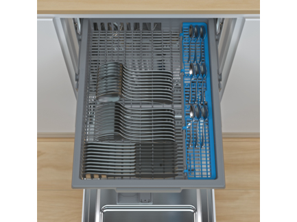 A harmadik kosár ideális hosszú evőeszközök és kisebb tárgyak, például kávéscsészék, csészealjak és reszelők elhelyezésére.