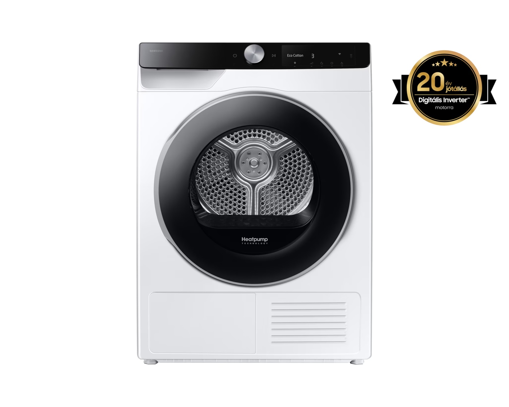 Bármely Samsung szárítógépet, amely Digital Inverter Motorral rendelkezik, bizalommal vásárolhatod meg, és 20 év garanciát* kapsz a motorra.6