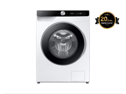 * Elérhető Android és iOS eszközökön. Wi-Fi kapcsolat és Samsung Account szükséges.** Akkor alkalmazható, ha a kiválasztott mosási hőmérséklet 20~40°C.*** A WW11BB944AGB modellen végzett belső tesztelés alapján, normál használati körülmények között. Eredmények: Energiafogyasztás AI Energia üzemmód nélkül = 0,539 KWh. Energiafogyasztás AI Energia üzemmóddal = 0,145 KWh. Az eredmények a tényleges használati körülményektől függően változhatnak.Élvezd a kiváló energiahatékonyságot, a kevesebb zajt és a hosszan tartó teljesítményt! A Digitális inverter technológia erős mágneseket használ a csendes és erőteljes teljesítmény érdekében, miközben kevesebb energiát* használ, mint egy univerzális motor. Emellett az iparág leghosszabb, 20 éves** jótállását kínálja a motorra.