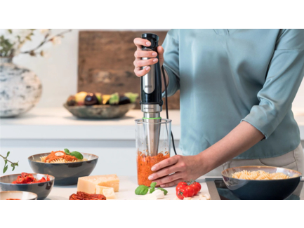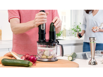 Az új Braun MultiQuick 7 botmixer lesz segítségedre, hogy finom és egészséges ételeket készíts családodnak és barátaidnak- gyorsan és könnyedén. Most csavartunk rajta még egyet, és megalkottuk az ACTIVEBlade technológiát, amely az aktív, fel-le mozgó pengének köszönhetően 250%-al több aktív vágó felületet biztosít*- gyors segítség a konyhában. Csak, hogy fokozzuk az innovációkat megalkottuk az Easy SmartSpeed technológiát, amely segít kézben tartani a dolgokat. Gyors, egykezes és fokozatmentes sebességváltás. *vs. Braun nem ACTIVEBlade technológiás botmixerei