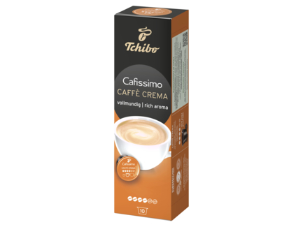 Caffè Crema Rich aroma a Cafissimo kapszulás kávéfőző rendszerhez. Minden egyes kapszula pontosan kiadagolt, finomra őrölt, egy csésze ízletes caffè crema vollmundig kávéhoz való mennyiséget tartalmaz. Egyszerűen csak a Tchibo Cafissimo készülékbe kell helyezni – egy gombnyomás és máris kész a kávé.