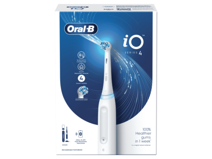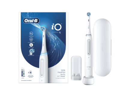Az iO 4 elektromos fogkefe az Oral-B legkiválóbb technológiáját alkalmazza, amely ötvözi a fogászati eszközök ihlette kerek fogkefefejet és a gyengéd mikrovibrációt kibocsájtó sörtéket, a professzionális tisztaság érzéséért otthonában is. Az okos nyomásérzékelő segít megelőzni a túl erősen vagy túl gyengén végzett fogmosást a fogíny védelme érdekében. A fogínyvédő technológia figyelmezteti Önt, ha túl nagy nyomással végzi a fogmosást. A legjobb eredmény érdekében 3 havonta cserélje le az Oral-B iO fogkefefejet.