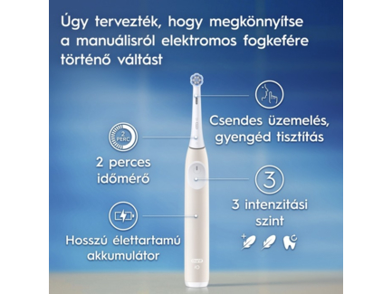 ÚGY TERVEZTÉK, HOGY MEGKÖNNYÍTSE AZ ELEKTROMOS FOGKEFÉRE TÖRTÉNŐ VÁLTÁST, ezért mindössze 1 érintőgombbal, csendes üzemmóddal és tartós akkumulátorral rendelkezik