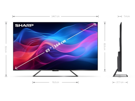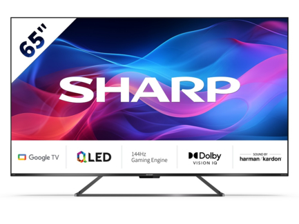 A 65GR8265E egy 4K Ultra HD keret nélküli QLED Sharp Google TV™ 144 Hz-es játékélménnyel.