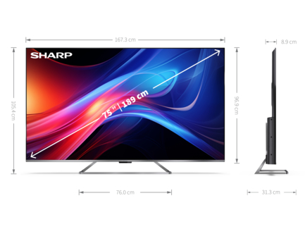 A 75GP7265E egy 4K Ultra HD keret nélküli QLED Sharp Google TV™, kivételes multimédiás funkciókkal.