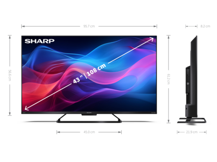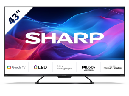 A 43GR8265E egy 4K Ultra HD keret nélküli QLED Sharp Google TV™ 144 Hz-es játékélménnyel.
